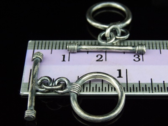 8KH-028 Thai karen hill tribe handmade silver 3 black&white plain round toggle
